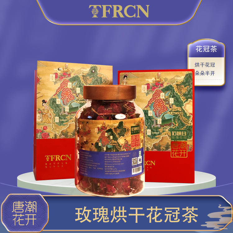 唐潮花開(kāi)平陰玫瑰花冠茶瓶裝凍干沖泡花...