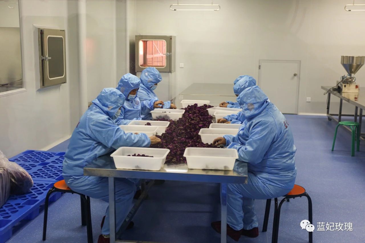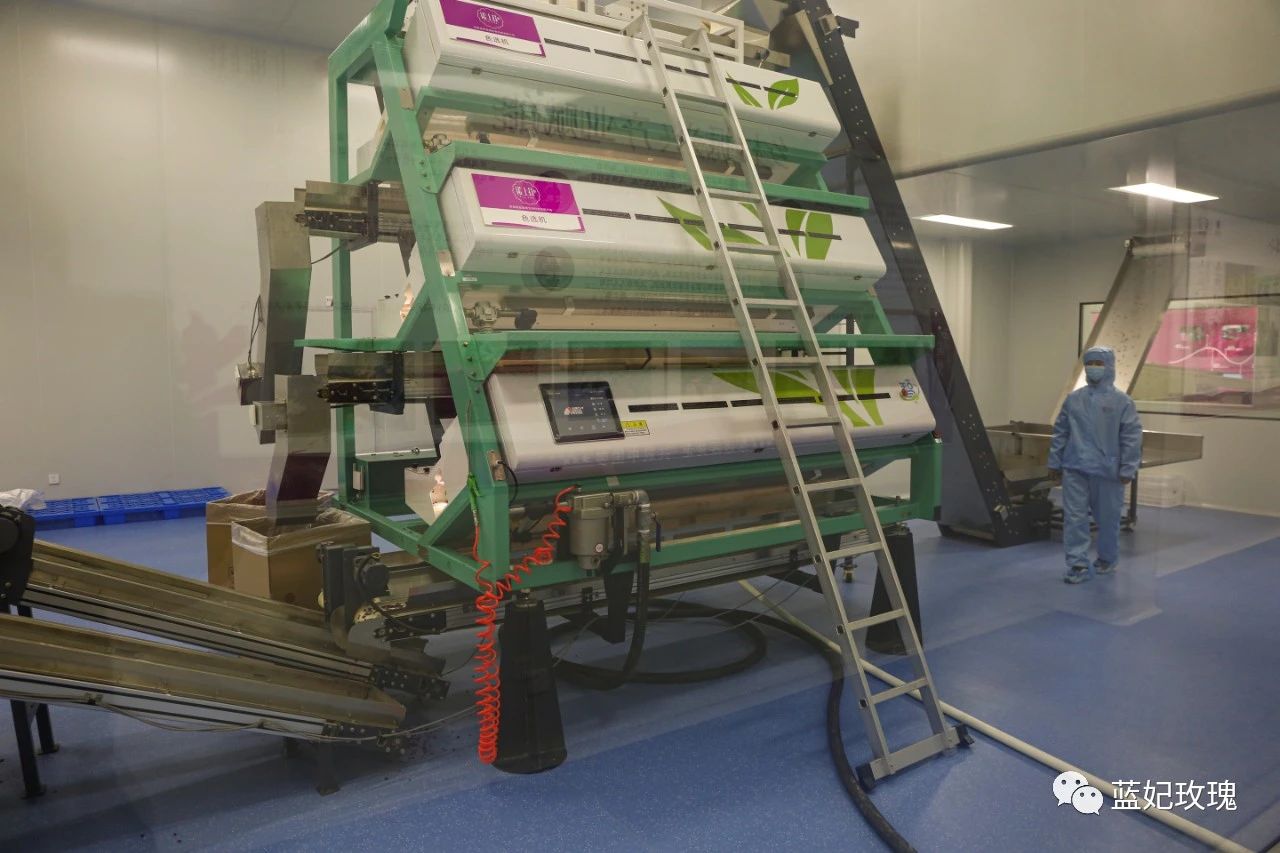 主要生產(chǎn)玫瑰花瓣和玫瑰超微粉,走差異化競爭,是進(jìn)入玫瑰產(chǎn)業(yè)較晚的車偉給公司的定位。通過智能化色選機(jī)等自動(dòng)化設(shè)備對玫瑰花瓣進(jìn)行四級篩選、金屬檢測、機(jī)械研磨,不等色澤、大小的花瓣派上了不同用處,走進(jìn)了全國眾多知名食品企業(yè)和網(wǎng)紅烘焙店。