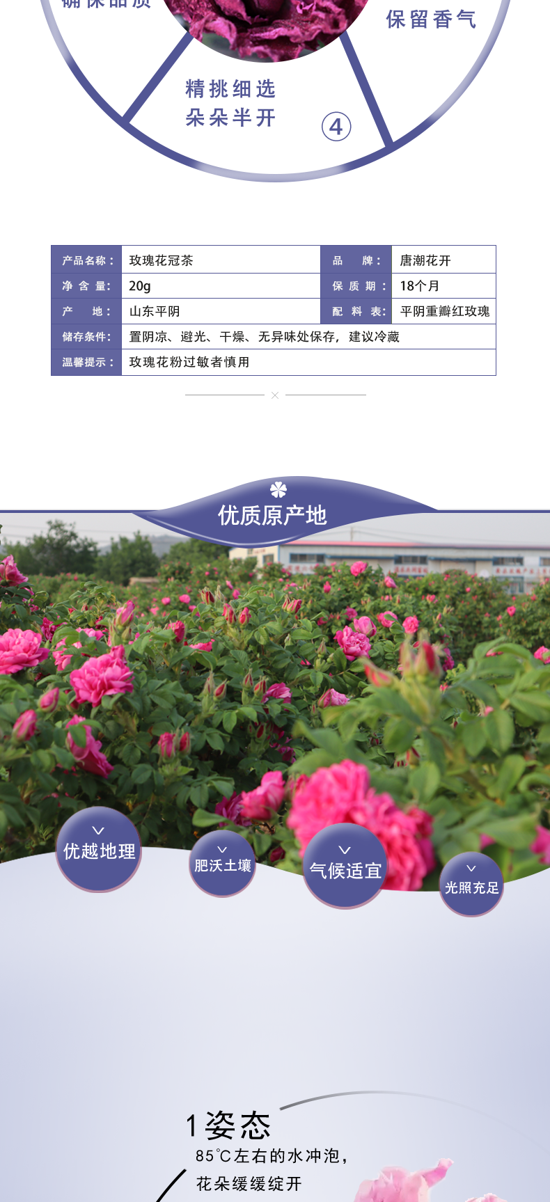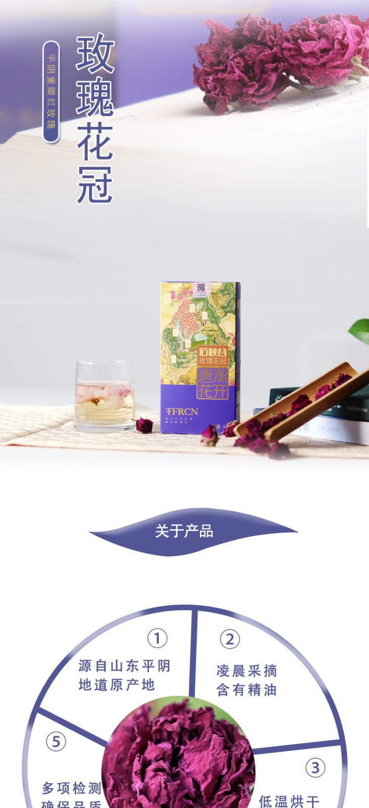 唐潮花開(kāi) 平陰重瓣紅玫瑰凌晨采摘 低溫烘干 花冠茶20g