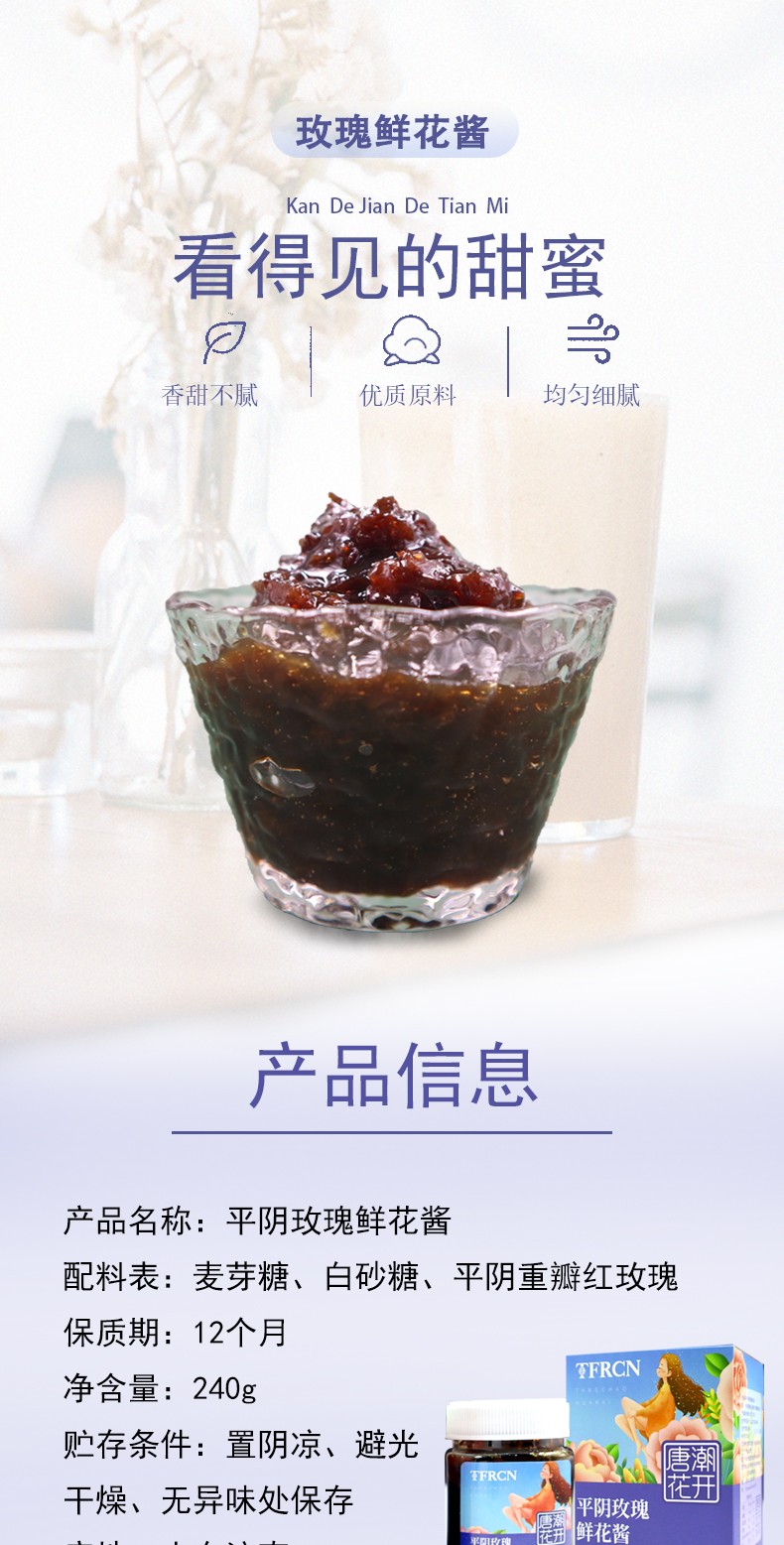 唐潮花開(kāi) 平陰玫瑰 入口醇香均勻細(xì)膩 玫瑰鮮花醬