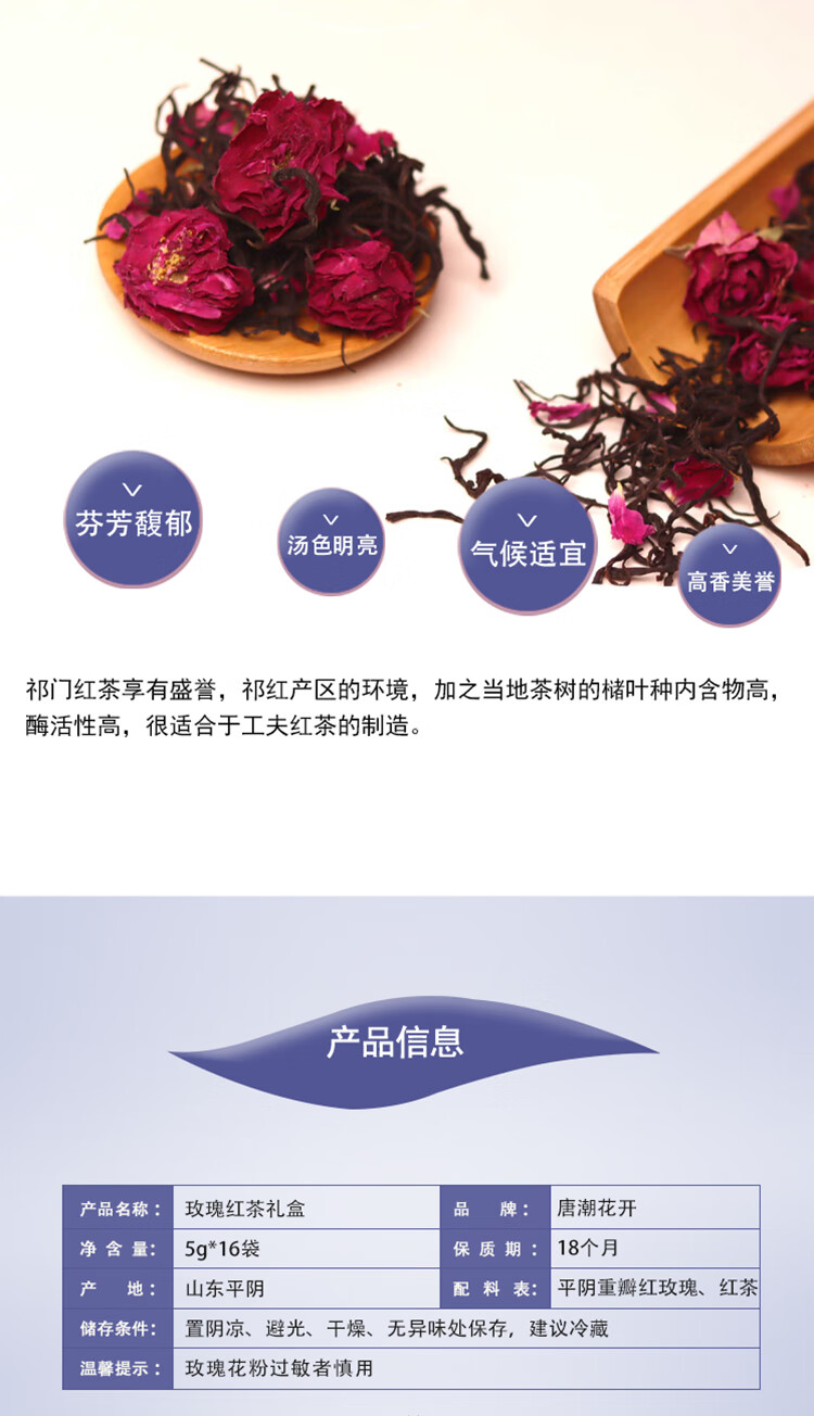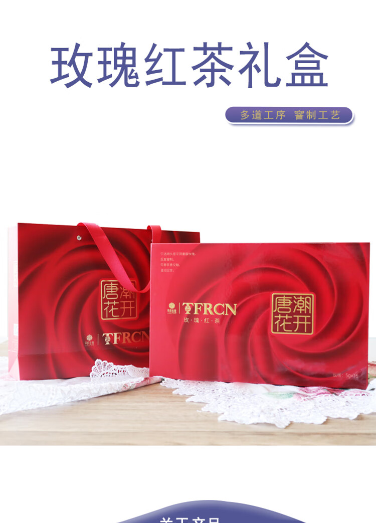 唐潮花開平陰重瓣紅玫瑰花冠紅茶獨立包裝禮盒裝