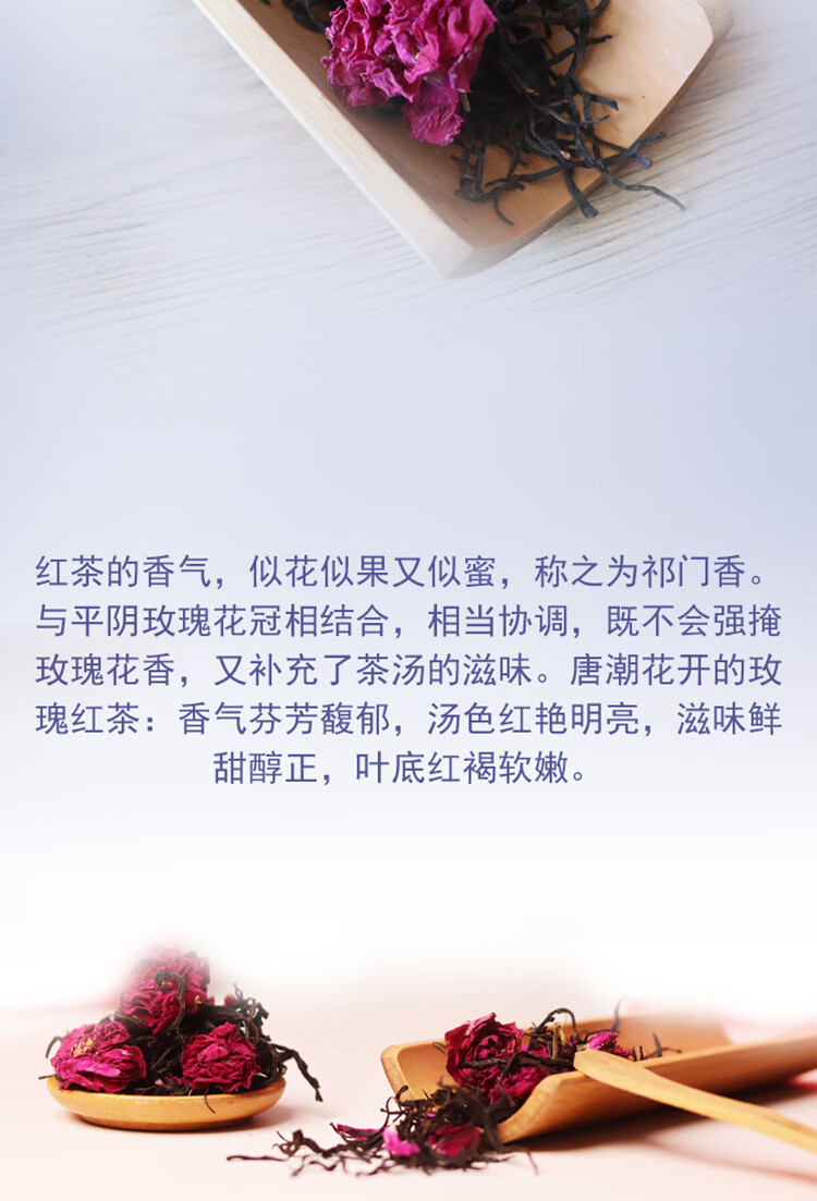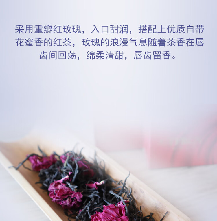 采用平陰重瓣紅玫瑰,入口甜潤,搭配上優(yōu)質自帶花蜜香的紅茶,玫瑰的浪漫氣息隨著茶香在唇齒間回蕩,綿柔清...