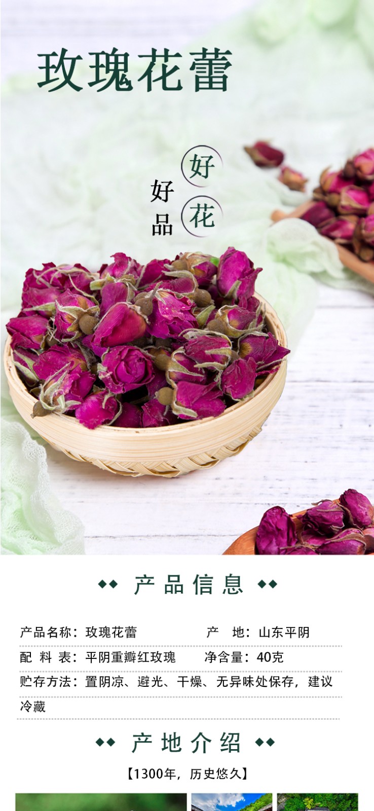 諾上花源頭廠家平陰傳統(tǒng)玫瑰花茶低溫烘干玫瑰花蕾40g