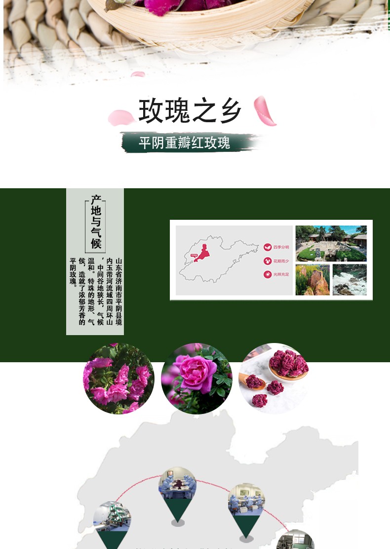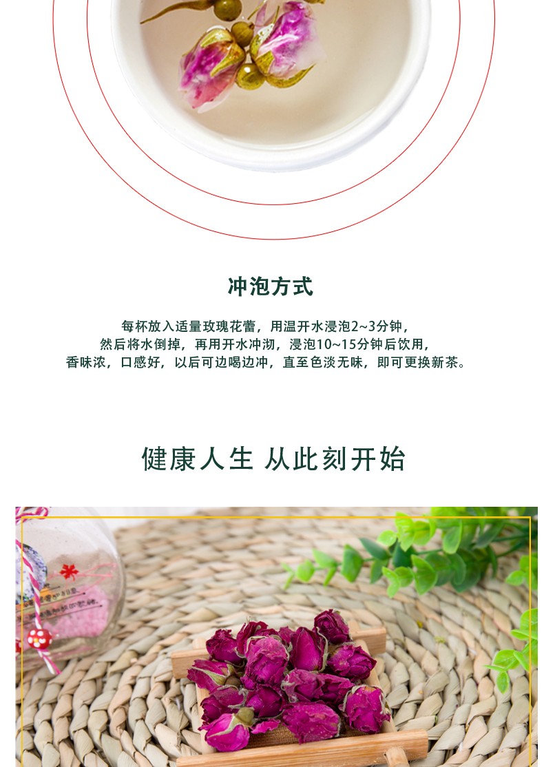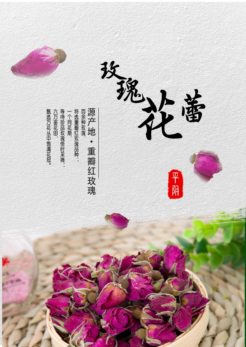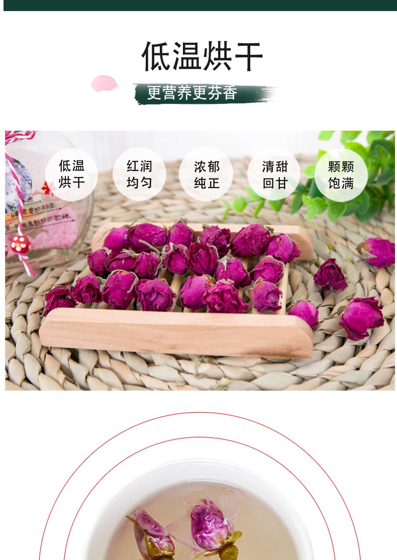 諾上花平陰玫瑰花蕾茶50g瓶裝低溫烘干玫瑰花茶